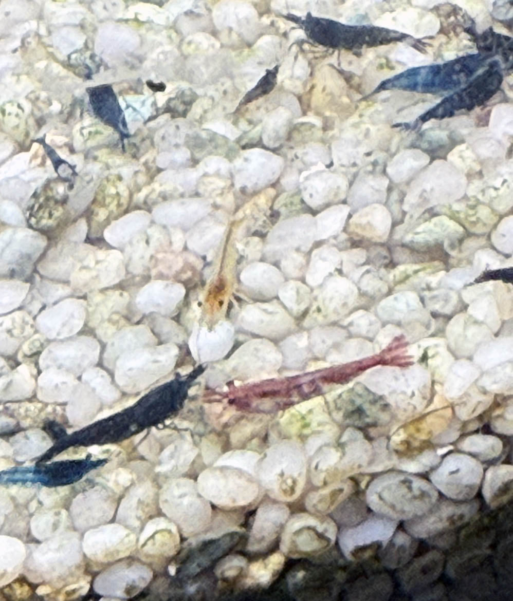 These tanks are black shrimp, blue shrimp, green and blue rili which a few dashes of red rili and orange rili but right now these guys are mostly from the green, blue, and black spectrum like what's in the picture.
